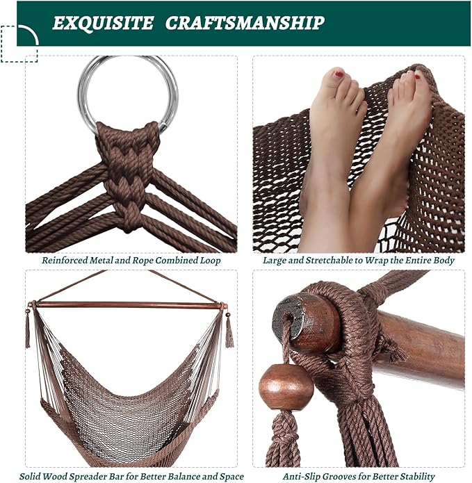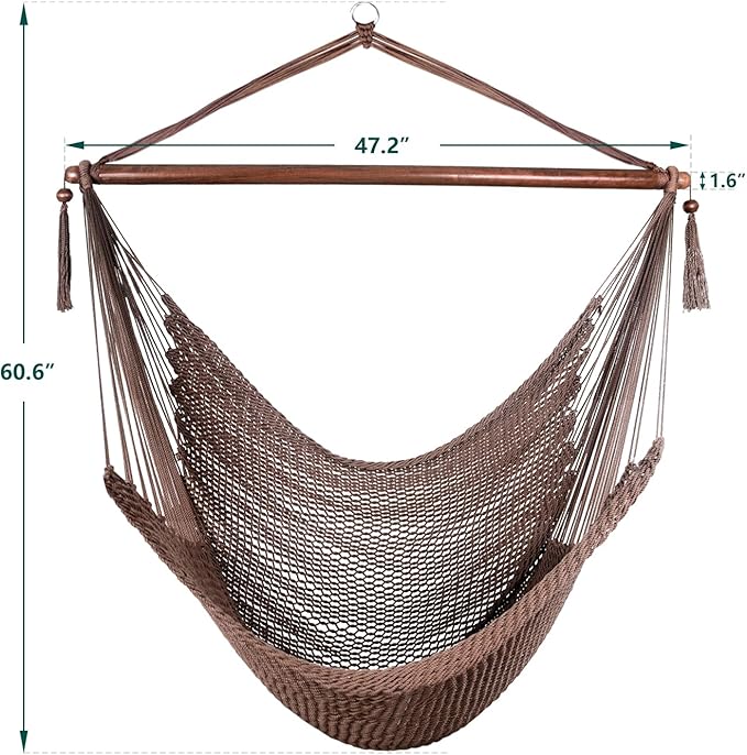 - 【Изключително голям размер】Това е голям и разтеглив хамак, който ви позволява да държите краката си напълно изпънати и почти да легнете плоско в него. Просторен е за възрастни с всякакъв ръст.