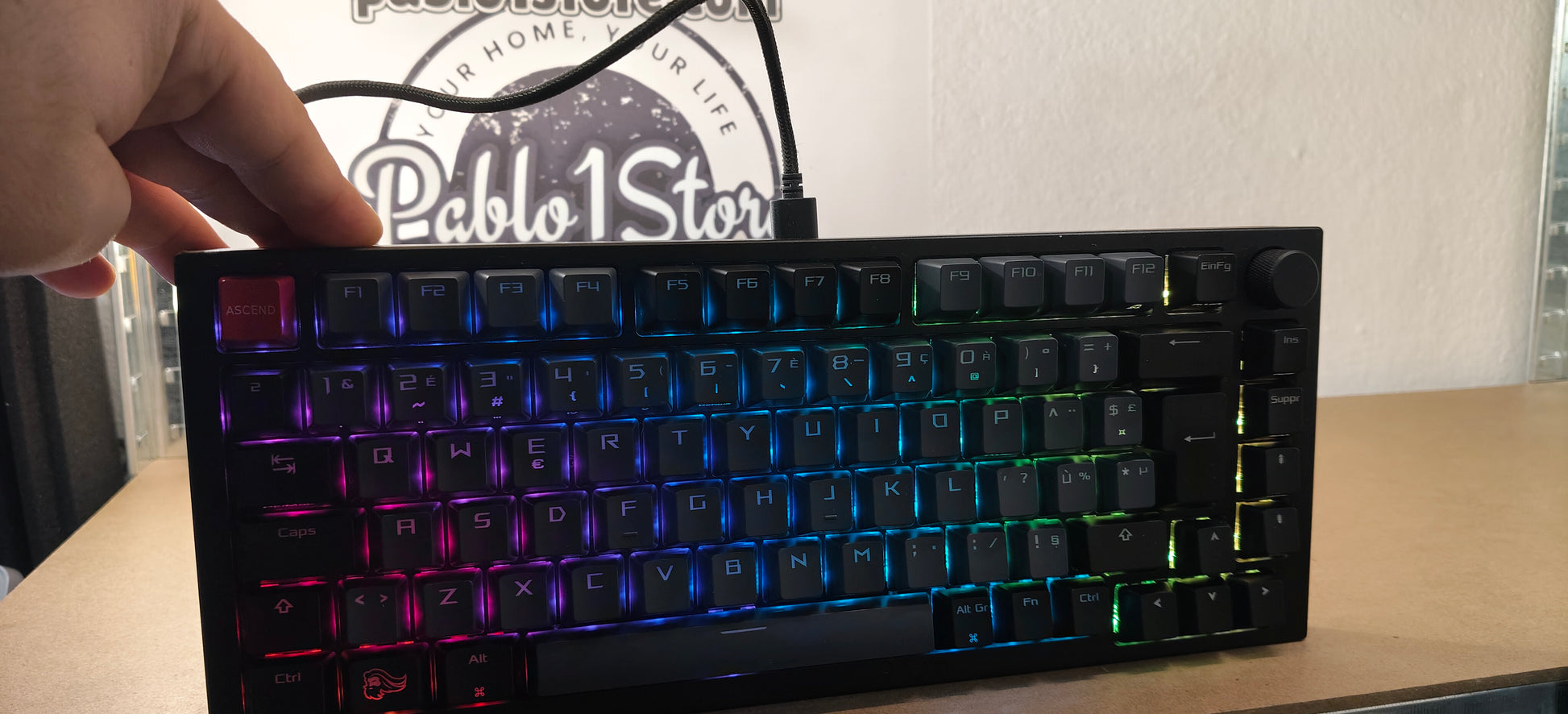 Клавиатура Glorious GMMK PRO 75% Pre-built, Механична, USB-C, Линеен превключвател ROG, Черен/Сив
