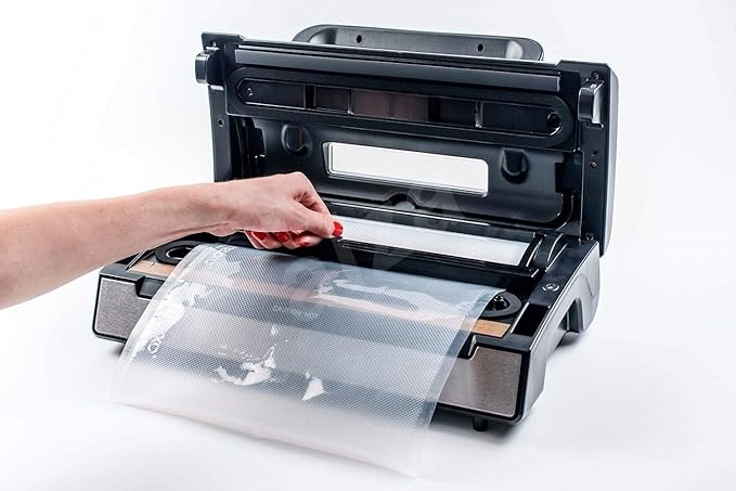 - Безплатен резервен комплект от висококачествени професионални торбички, фолиа и ролки на стойност 10 евро (1 ролка за вакуумно запечатване 28 x 300 см, 1 ролка 20 x 300 см, 5 торбички за вакуумно запечатване 22 x 28 см).